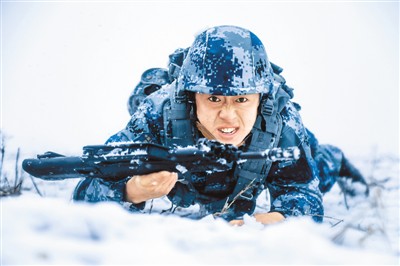 1月7日,河南开封,空降兵某旅官兵在风雪中进行单兵战术训练。