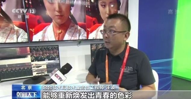 总台技术局技术业务部工程师 汪波:大家看到我们后面这个大屏,《西游记》是1986年,《红楼梦》是1987年,按照标清的这个格式来进行拍摄的。这个画面原来有各种各样的噪点划痕,这个就是我通过人工智能的算法,由原来的普通的标清的这个色域变成了超高清的4K,使这样的老的这种文艺片能够重新焕发出青春的色彩。