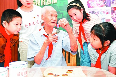 抗美援朝老战士向学生们讲述抗美援朝那段难忘的经历。夏晨希摄/光明图片