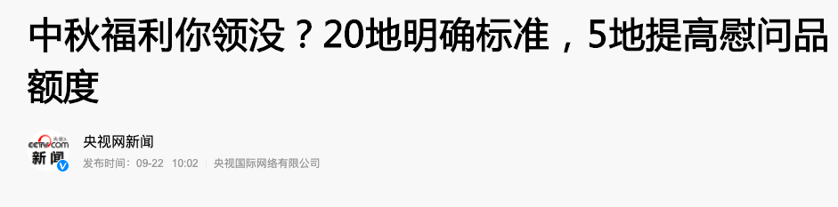 截至目前,至少已有20省份明确节日慰问品发放标准。除上海外,至少内蒙古、湖北、陕西、福建、山东5省份近年不同程度上调了节日慰问品上限标准,其中陕西于2019年1月,将基层工会逢年过节向全体会员发放慰问品的标准上限提高700元至每人每年不超过2200元。