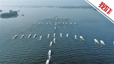 来源标题:庆丰收迎国庆 几十艘船摆出巨型“丰”字