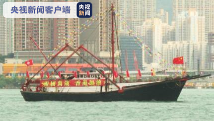 为庆祝国庆和中秋,40艘渔船在香港维多利亚港巡游。渔船上国旗高扬,彩旗招展,写上了“热烈庆祝祖国建国71周年华诞”“祖国万岁 香港加油”“祖国安定繁荣 香港明天更好”等祝福的话语。