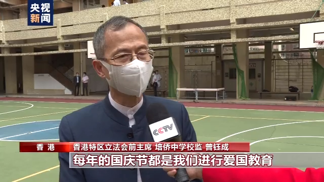 香港特区立法会前主席 培侨中学校监 曾钰成:每年的国庆节都是我们进行爱国教育,国民身份教育很重要的一个节日,让学生在国庆节这个节日多了解国家的最新发展。还有就是“一国两制”,建立一个正确的国家民族的观念,这个是非常重要。
