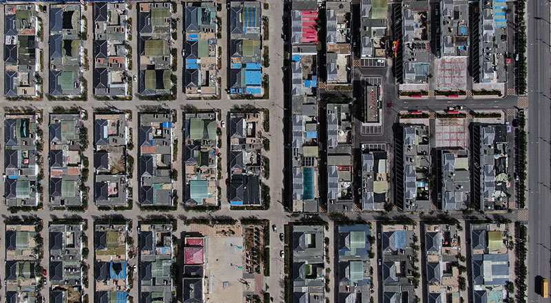 这是9月22日拍摄的青海省海西蒙古族藏族自治州乌兰县茶卡镇巴音村,当地村民依托茶卡盐湖旅游资源,经营家庭宾馆和农家乐(无人机照片)。