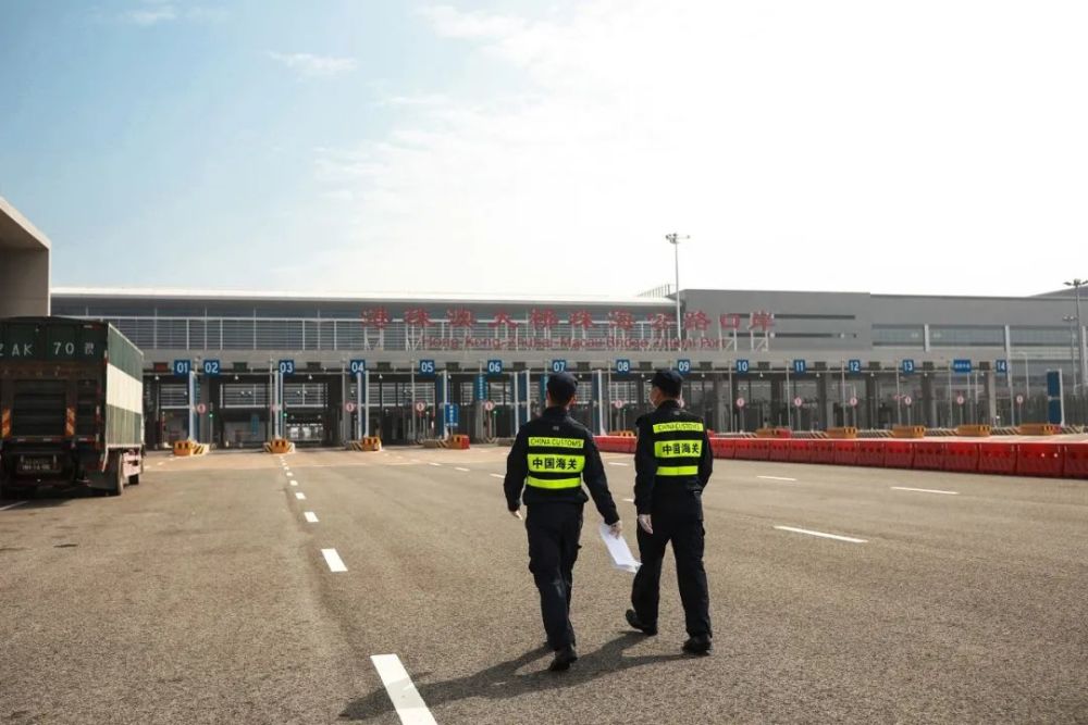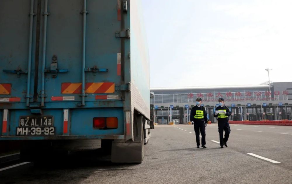 通过大桥连接香港、澳门的港珠澳大桥珠海公路口岸,是供港、供澳民生物资的重要通道。