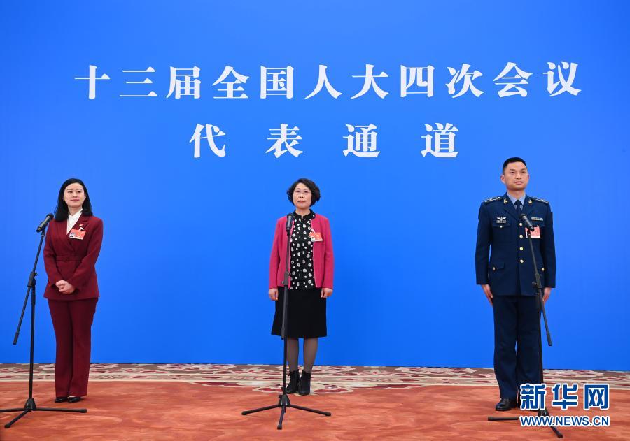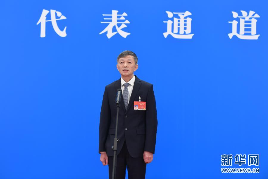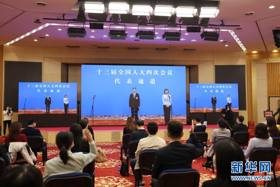3月5日,第十三届全国人民代表大会第四次会议举行首场“代表通道”采访活动。这是全国人大代表通过网络视频方式接受采访。新华社记者 金立旺 摄