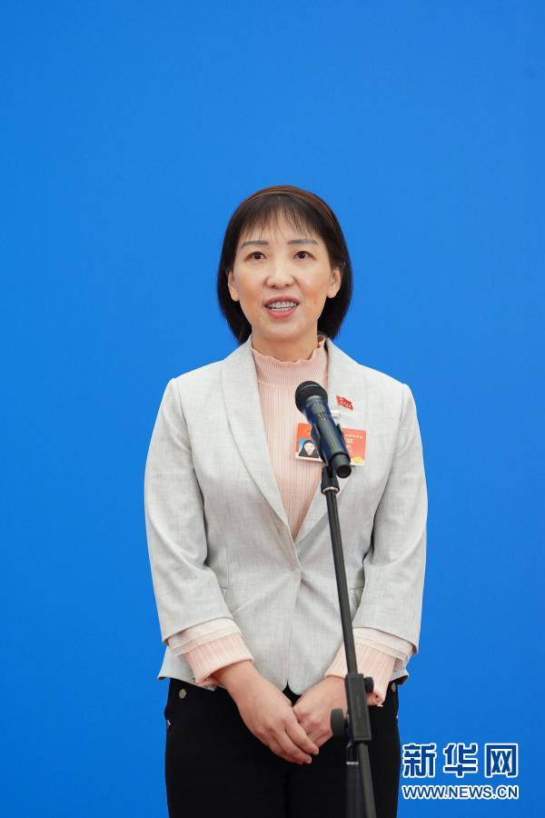 3月5日,第十三届全国人民代表大会第四次会议举行首场“代表通道”采访活动。这是全国人大代表袁晶通过网络视频方式接受采访。新华社记者 金良快 摄