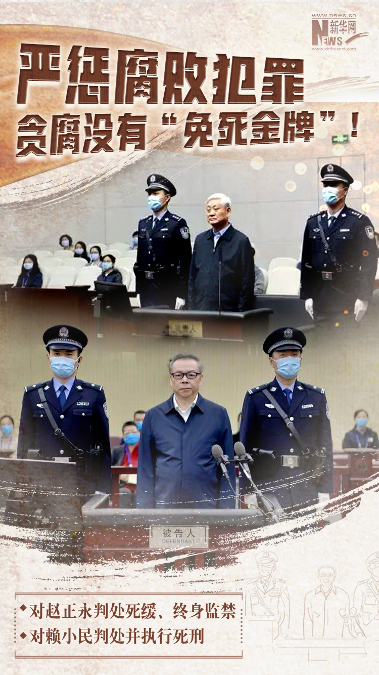 审结贪污贿赂、渎职等案件2.2万件2.6万人,对赵正永判处死缓、终身监禁,对赖小民判处并执行死刑,彰显了党中央惩治腐败的坚强决心。