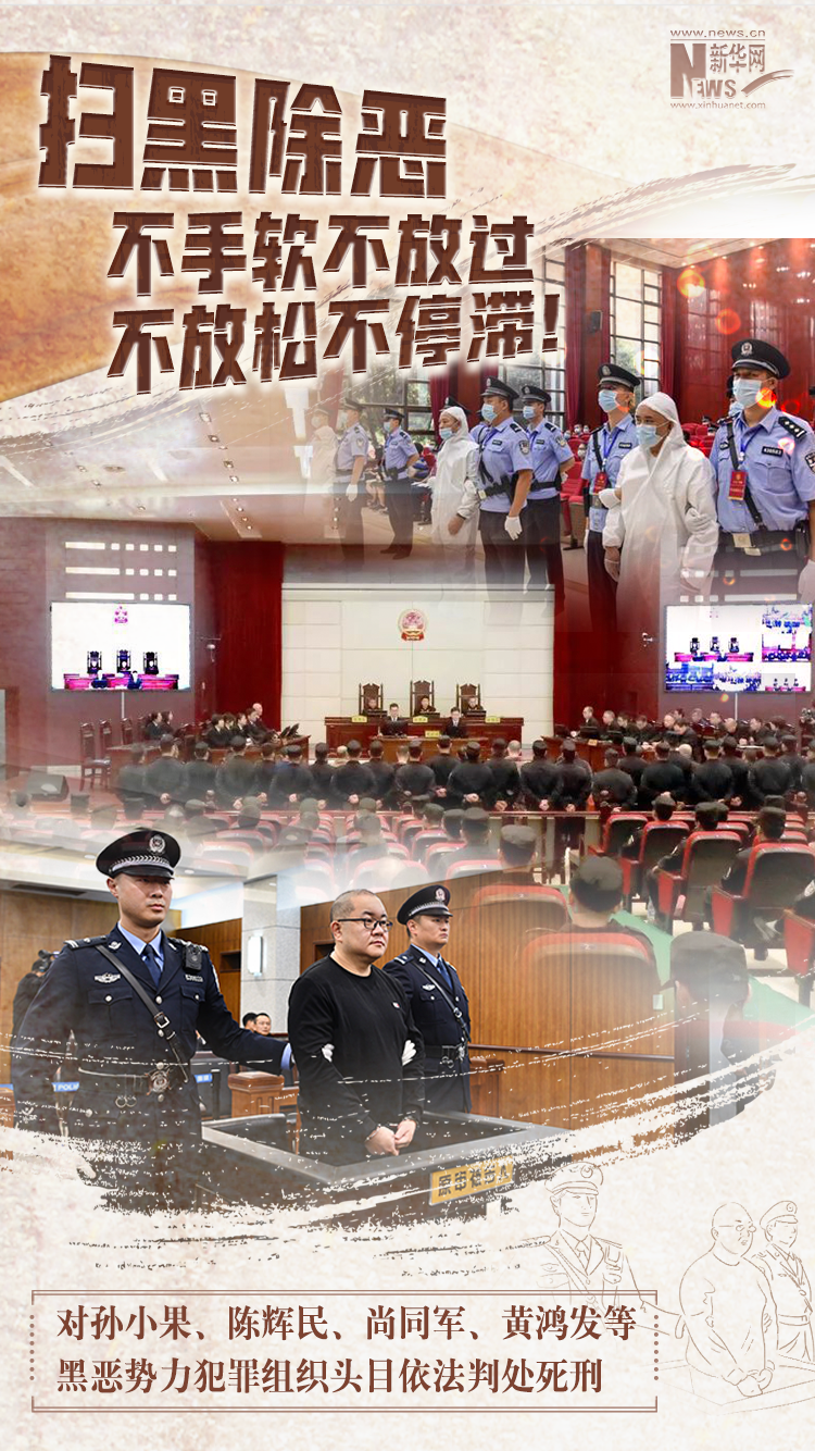 完成扫黑除恶专项斗争审判执行任务。依法惩处黑恶犯罪分子,审结涉黑涉恶犯罪案件33053件226495人,对孙小果、陈辉民、尚同军、黄鸿发等黑恶势力犯罪组织头目依法判处死刑。