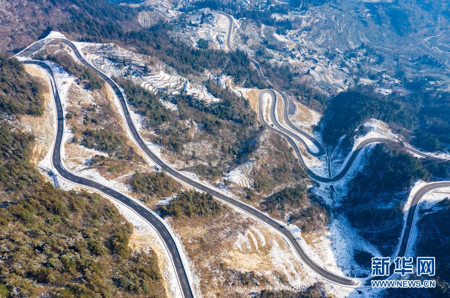 这是1月8日在湖北省秭归县茅坪镇拍摄的盘山公路(无人机照片)。 近年来,秭归县积极推进农村公路建设,极大方便了山区群众出行。 新华社发(郑家裕 摄)
