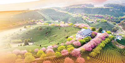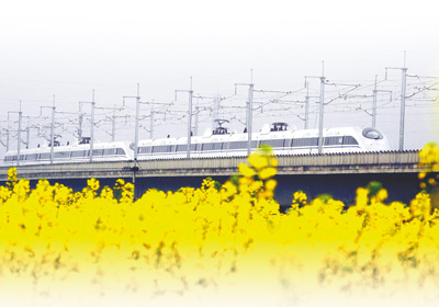 江西省峡江县水边镇义桥村,列车从油菜花丛中疾驰而过。