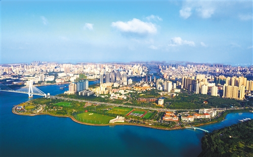 海南省海口市区一角(无人机拍摄)。 李天平摄