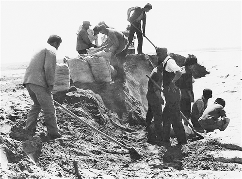 1988年,一八五团战洪魔现场。(资料图片)