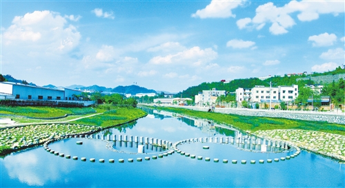 治理后的十堰泗河水清河畅、岸绿景美。(资料图片)