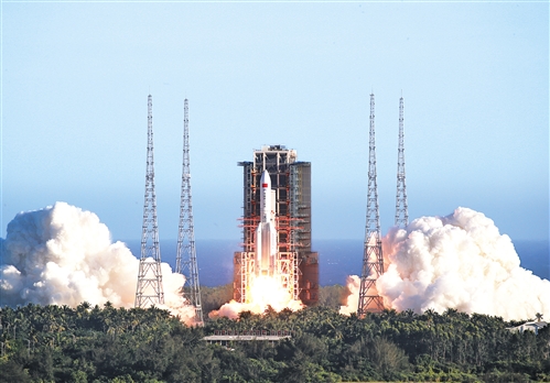 2020年5月5日,为我国载人空间站工程研制的长征五号B运载火箭在海南文昌首飞成功,正式拉开我国载人航天工程“第三步”任务的序幕。屠海超摄(新华社发)