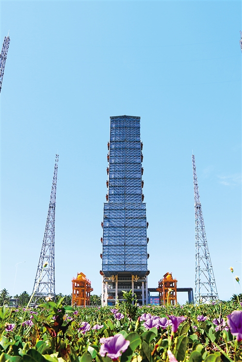 海南文昌航天发射场的长征七号运载火箭发射塔架。 新华社记者 曾 涛摄