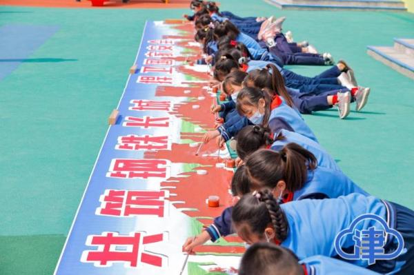 视频车在播放着国家安全教育宣传片,40块展牌上详细介绍了国家安全相关知识及案例;将国家安全意识融入剪纸艺术,任凤中心小学的孩子们跟着宁河区剪纸非遗传人王金焕学习剪纸了解国家安全知识。王金焕在认真学习总体国家安全观后,用了将近一个月构思完成了这50来幅剪纸,每幅剪纸都含有十个以上元素,分别从政治安全、国土安全、军事安全等16个领域展现了国家安全知识。