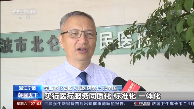 宁波市北仑区人民医院院长 张幸国:我们总院专家资源下沉,实行医疗服务同质化、标准化、一体化,建立省、区、乡、村四级医疗服务网络,来最大程度保障群众的健康。