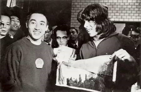 庄则栋:就在这个时候,都做好准备车要开了,蹿上来一个长头发的一个美国运动员。我当时一看,谁都不理他,我当时想这不好吧,总理说了,友谊第一,比赛第二。过去以后,我就跟他说,你叫什么名?他说叫科恩,我就说,美国政府对中国不友好,但是美国人民和运动员都是中国人民的好朋友,为了表达中国人民和运动员对美国人民和运动员的友谊,我说我送你一个礼物作为纪念。我下来以后,我们俩就握手,记者就照相。这一照以后呢,日本三大报纸,通栏标题,图文并茂,“中美接近”登出来了。