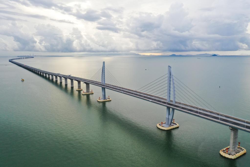 这座世界最长的跨海大桥,历经6年筹备、9年施工,数万名建设者披荆斩棘,创造了世界桥梁史上的奇迹。2018年10月建成通车后,粤港澳三地人流、车流和物流更加紧密地联系在一起,大湾区内的要素流动更为便利。