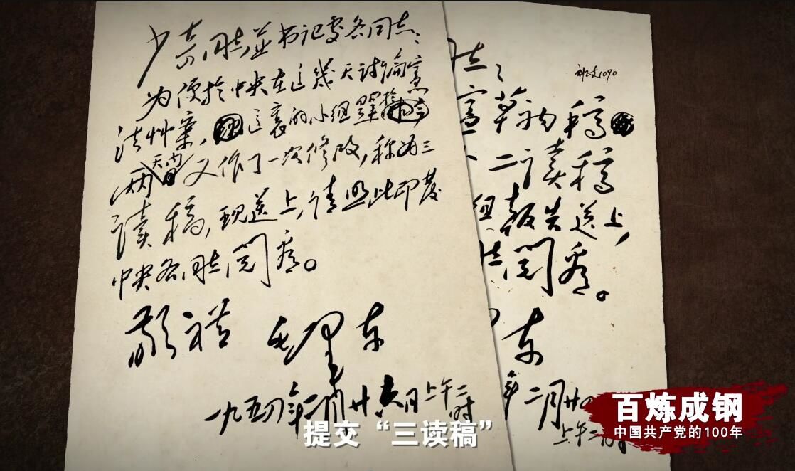 1954年2月24日,毛泽东致信在北京主持工作的刘少奇,提交“二读稿”。两天后,提交“三读稿”。落款处的时间,都是“上午二时”。