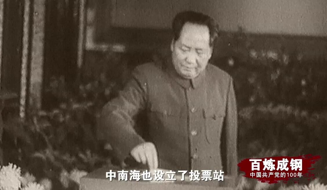 中南海也设立了投票站,毛泽东、朱德、刘少奇和周恩来都来到投票站投票。