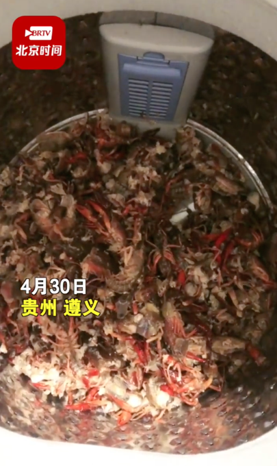 4月30日,贵州遵义的周女士称,因为孩子考得好,她花了250块钱买了十斤虾。参照网上短视频的方法,用洗衣机洗小龙虾。洗了20分钟,打开洗衣机盖子后发现,小龙虾全部变成碎渣渣。她还自嘲,视频敢说,自己敢做,傻傻的感觉。