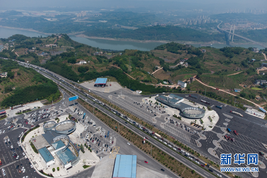 俯瞰沪渝通道石渝高速涪陵西服务区。新华网 耿骏宇 摄