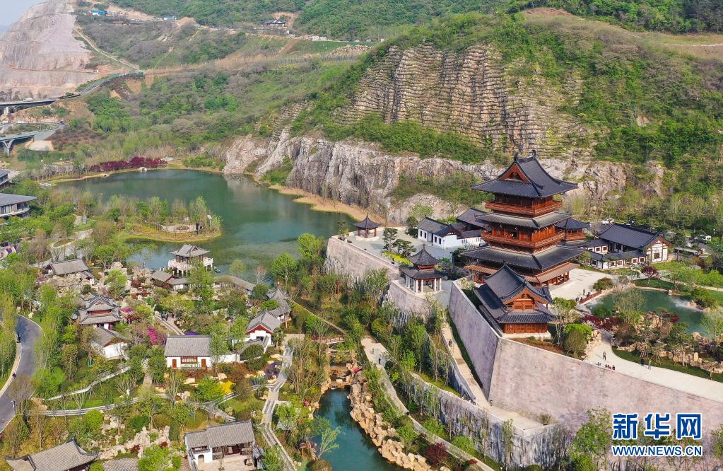 这是位于江苏省南京市江宁区的江苏园博园(2021年4月15日摄,无人机照片)。新华社记者 季春鹏 摄
