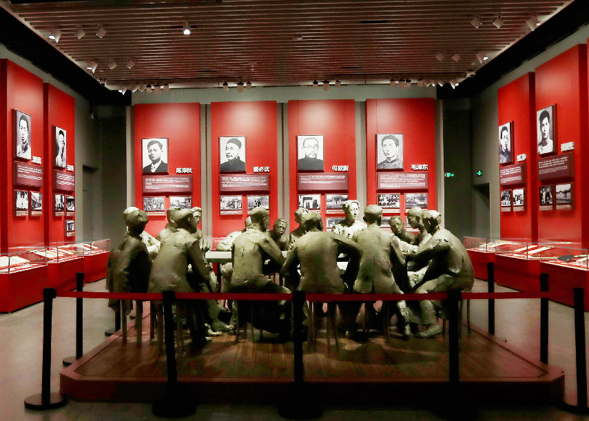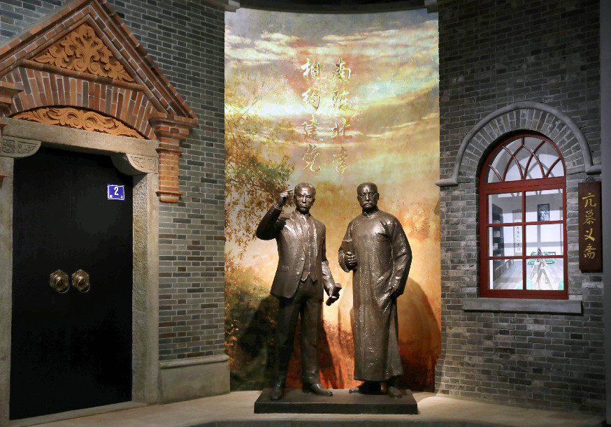 中共一大纪念馆“南陈北李 相约建党”雕塑。