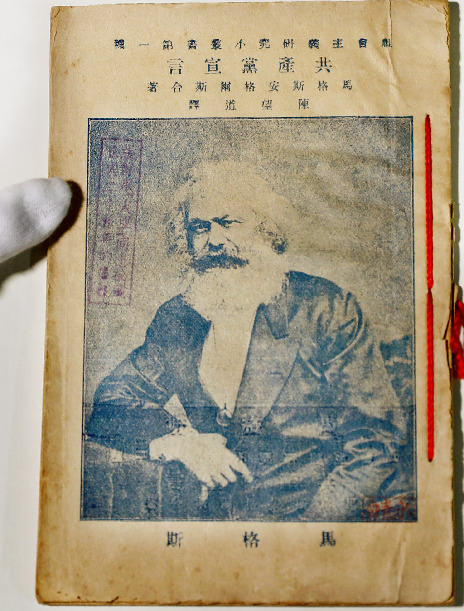 中共一大纪念馆展出的1920年8月和9月的第一、第二版《共产党宣言》中文全译本。