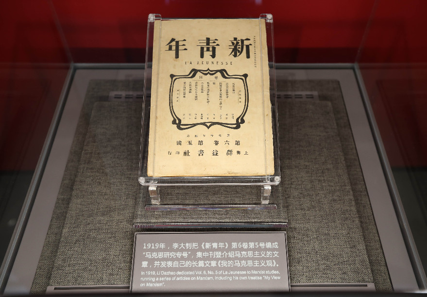 中共一大纪念馆展出的李大钊使用过的打字机。