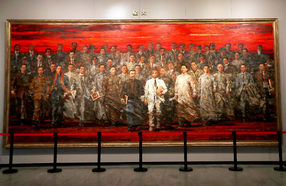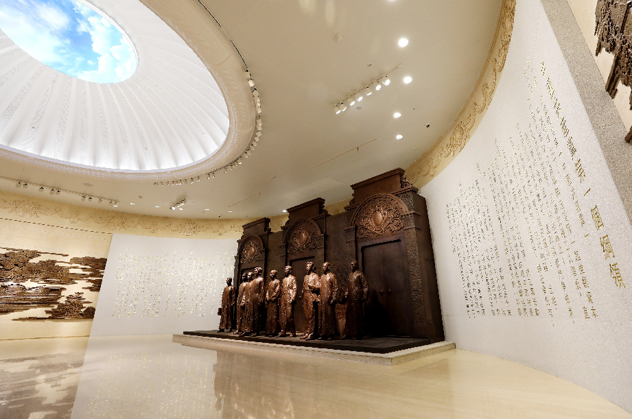中共一大纪念馆大型陶板装饰浮雕“日出东方——从石库门到天安门”历史组画。