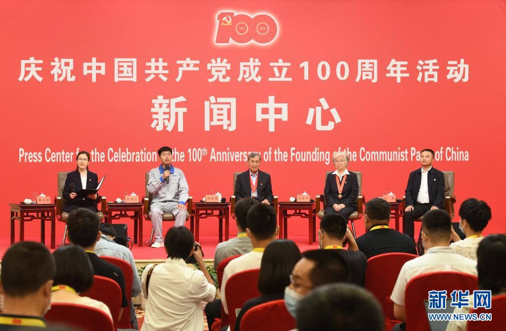 6月28日,庆祝中国共产党成立100周年活动新闻中心举办中外记者见面会。2位“光荣在党50年”纪念章获得者代表和2位新发展党员代表围绕“传承百年薪火 践行初心使命”主题,与记者交流了自己的故事。新华社记者 金良快 摄