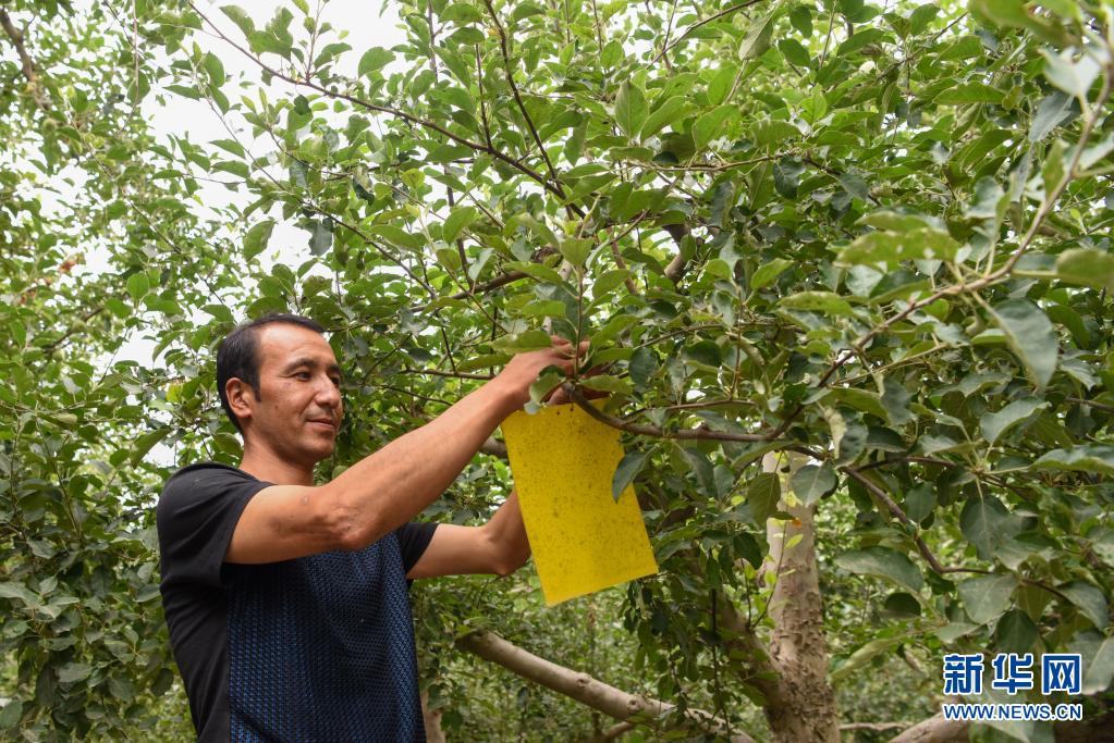 7月5日,在新疆阿克苏市依干其乡巴格其村,村民在采摘园忙碌。新华社记者 丁磊 摄