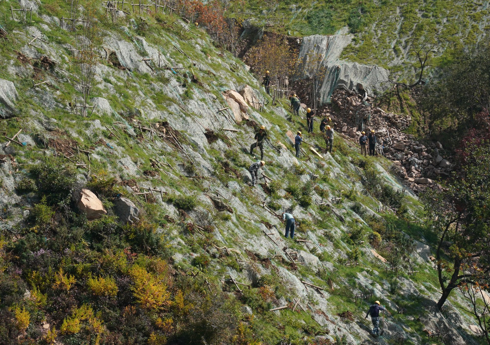 2020年9月27日,工作人员在延庆赛区进行生态修复工作。新华社记者 张晨霖 摄