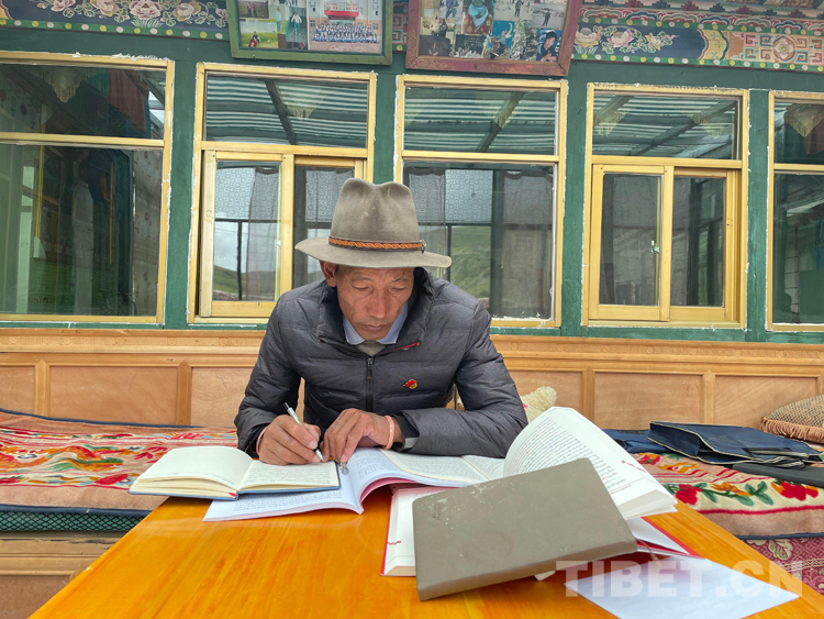 小到家庭纠纷,大到村民大会,都会有索朗顿珠宣讲普及法律法规和惠民政策的影子,因为作为一名共产党员,他认为有责任和义务向群众宣传现在的富足生活都要归功于中国共产党。
