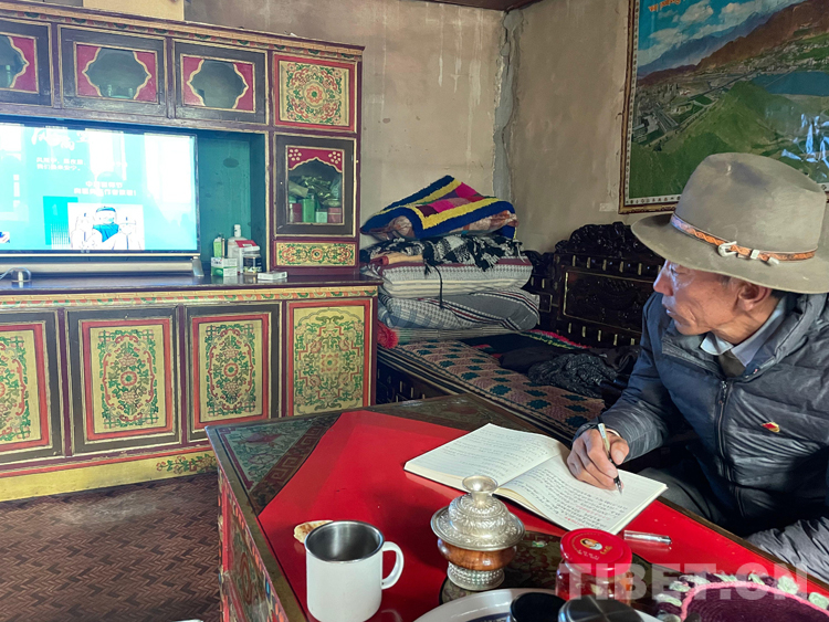 索朗顿珠积极参加镇、村组织的“红色夜校”“读书班”等学习培训,一天不落的准时收听收看最新时事新闻,随时随地记录党的最新政策、党史知识的学习内容和心得,同时还及时总结梳理不清晰、不清楚的地方,从而加以改进。经过孜孜不倦的学习和实践,他在宣讲中形成了深入浅出、通俗易懂、幽默风趣的宣讲风格,被广大农牧民群众亲切地称呼为“政策广播员”。