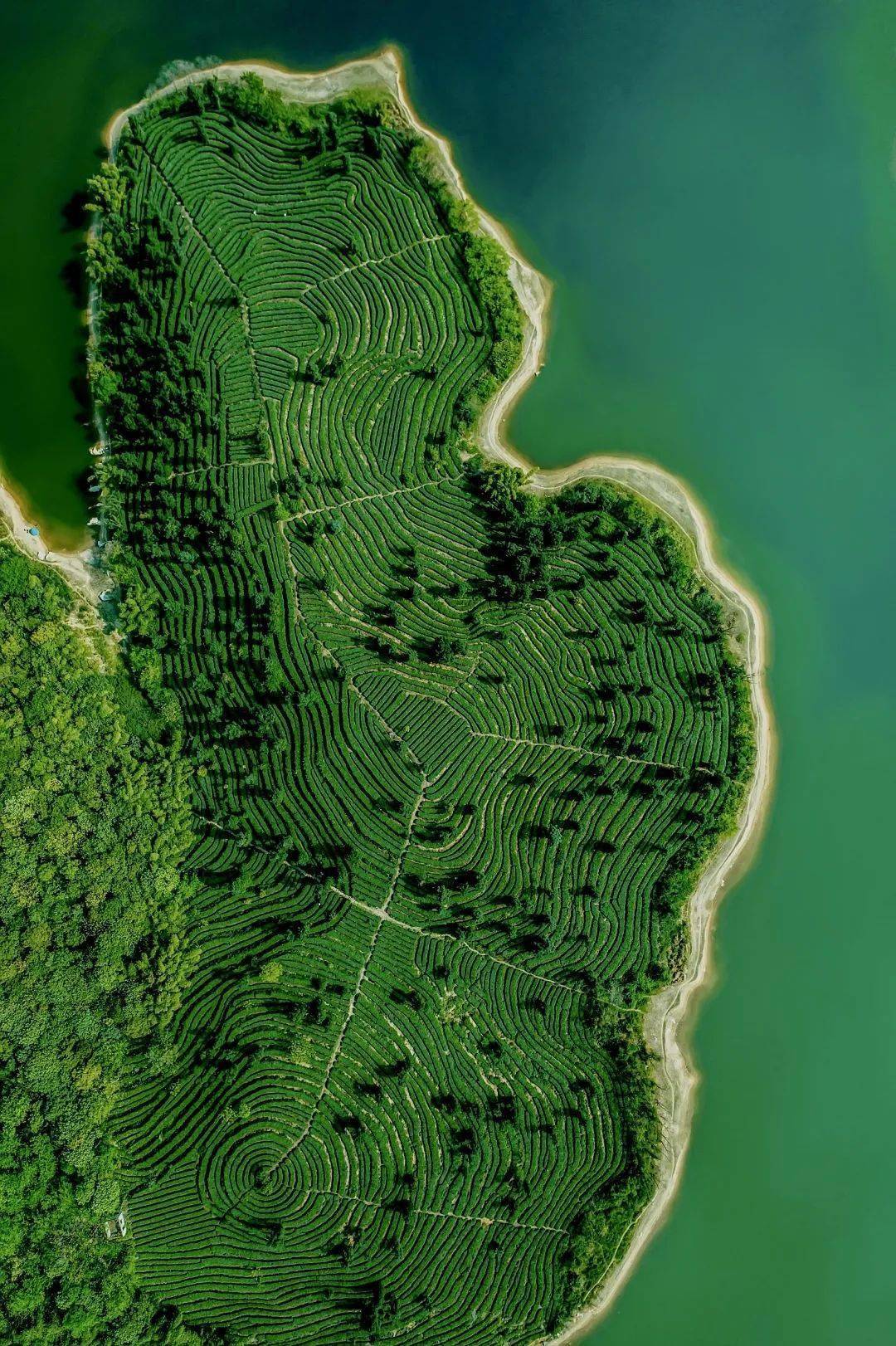 而在四川德阳,农民种植的茶树似一条条绿色的丝带,将茶山环绕。