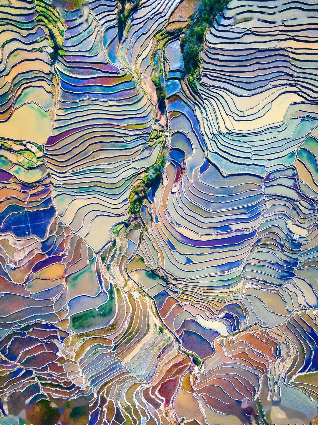 夕阳下的云南红河的哈尼梯田,就是大自然打翻的调色盘。