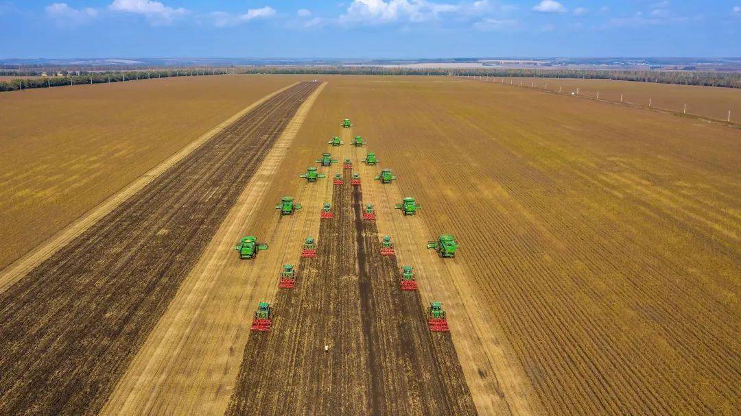 这是在黑龙江鹤岗,为抢抓农时采取机械统一指挥作业的方式收割的景象,