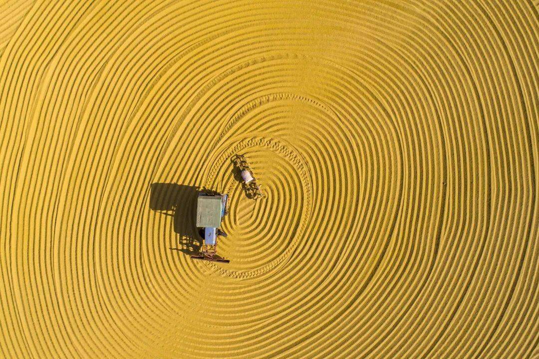 开阔的田块形态万千:直线、斜线、弧线、曲线、圆线一应俱全。