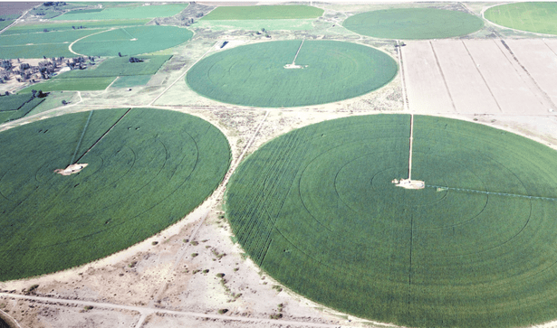 这是为了节约灌溉用水,使用的指针式喷灌设备,