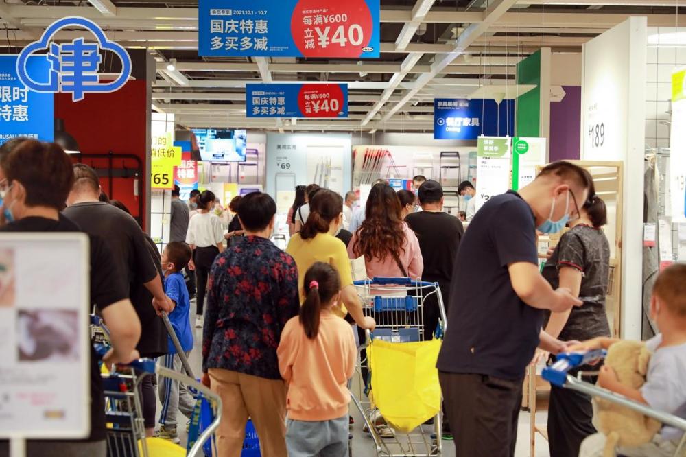 位于武清区的佛罗伦萨小镇又迎来了销售高峰。打折,满减,叠加活动……超200家国内外名品低至2折起,消费满减最高可得800元的满赠礼品卡,商家联动开展形式多样的打折促销活动,抓住“金九银十”消费旺季,进一步激发市场活力、加速市场回暖,满足群众多样化消费需求,引爆了国庆购物潮。记者从多家店铺了解到,国庆假期前四天虽然有零星降雨,但是丝毫没有影响人们购物的热情,平均客流量增加了40%左右,销售额随之增长,很多周边市民纷纷来到天津购物消费。