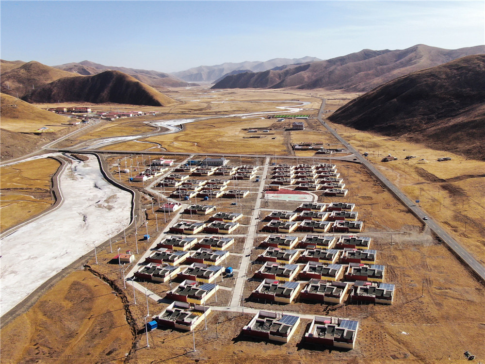这是1月11日拍摄的青海省果洛藏族自治州甘德县上贡麻乡隆亚村搬迁点全貌(无人机照片)。新华社记者 张龙 摄