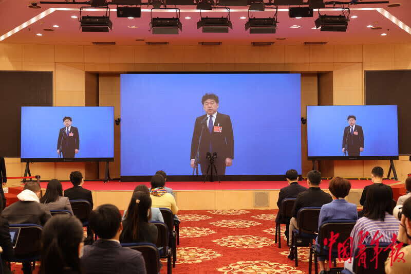 3月5日,北京梅地亚新闻中心,全国人大代表、北京市建筑设计研究院、首钢集团总建筑师吴晨,通过网络视频方式接受采访。吴晨就首钢园区还有北京老城区的改造等,回答记者提问。中青报·中青网记者 曲俊燕/摄