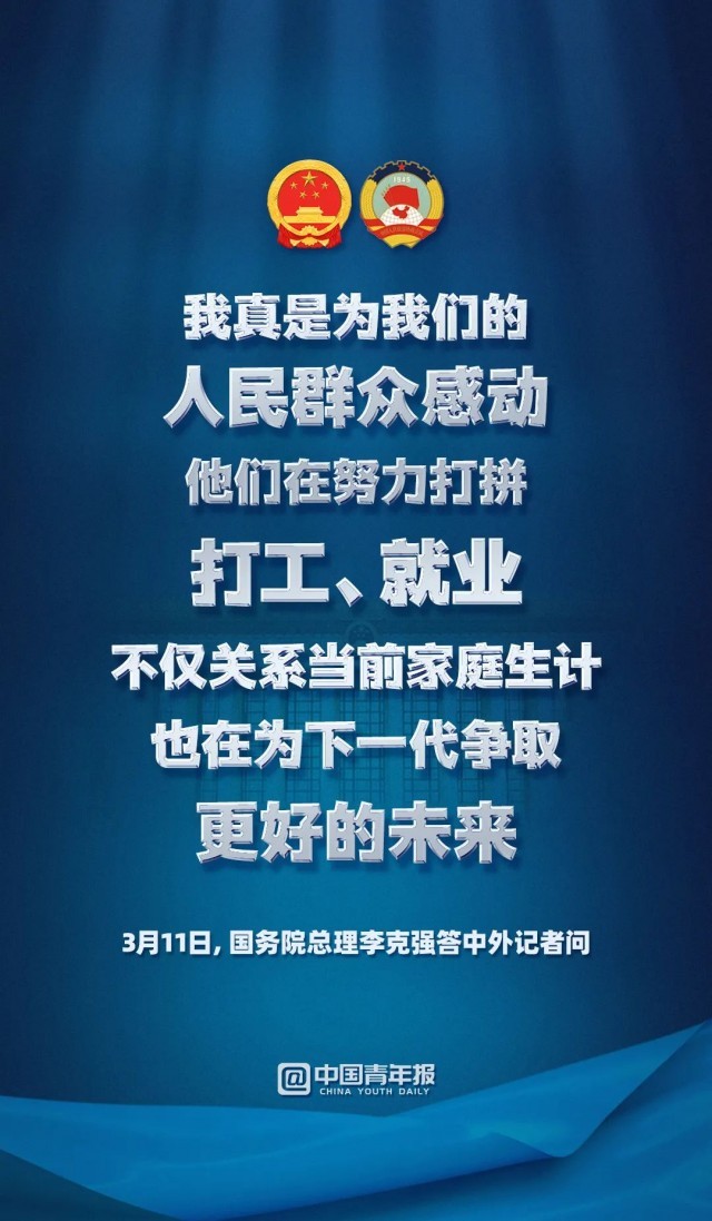 所以说,打工、就业不仅关系当前的民生。我真是为我们的人民群众感动。有很多人努力通过就业,为下一代来争取更好的未来。