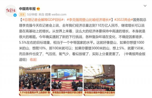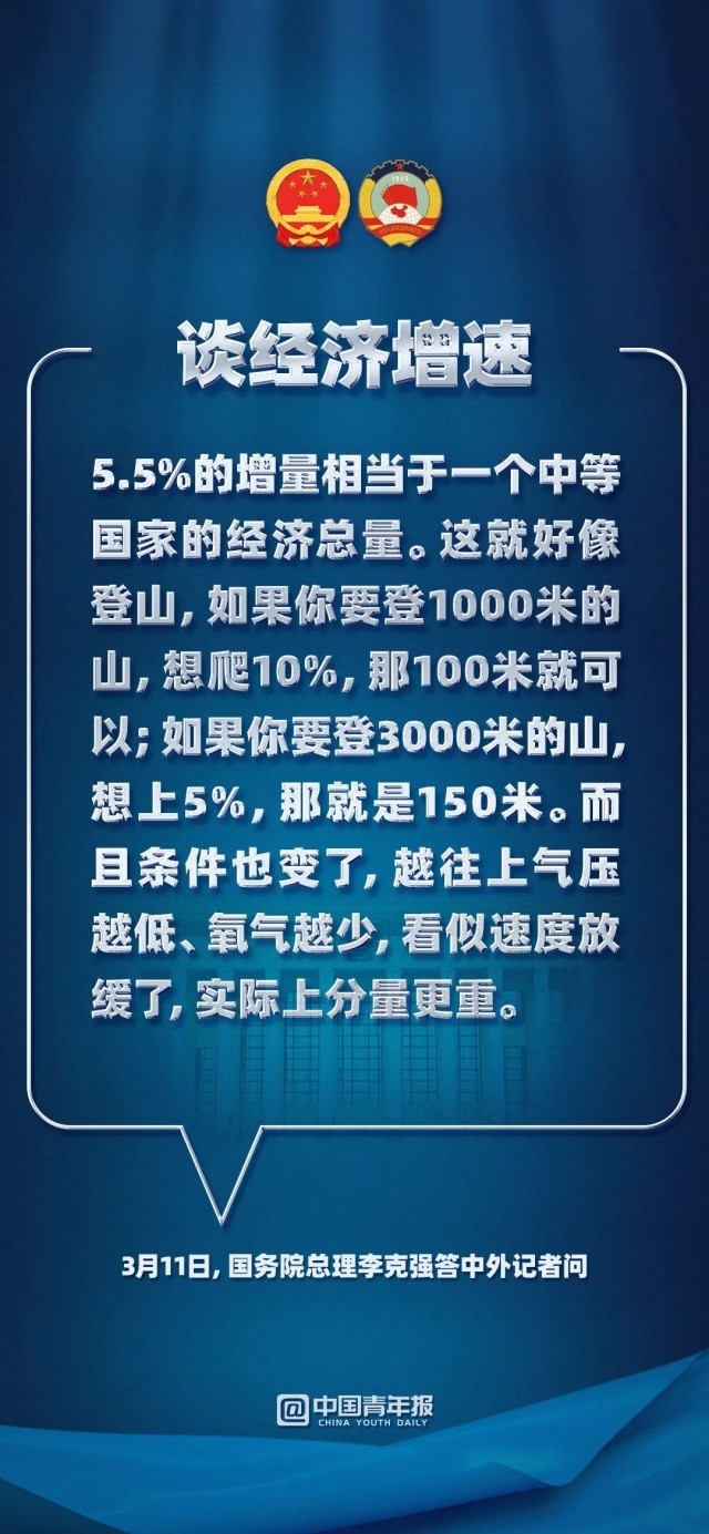 去年我们经济总量达到110万亿人民币,继续增长可以说是在高基础上的增长。从世界上来看,这么大的经济体要保持中高速的增长,本身就是很大的难题。今年确实遇到了新的下行挑战,各种复杂环境在变化,不确定因素增多,5.5%左右的目标增量,相当于一个中等国家的水平。