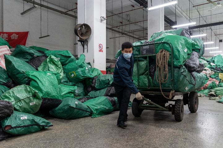 2021年2月27日,柴闪闪领出邮件。(新华社记者王翔摄)