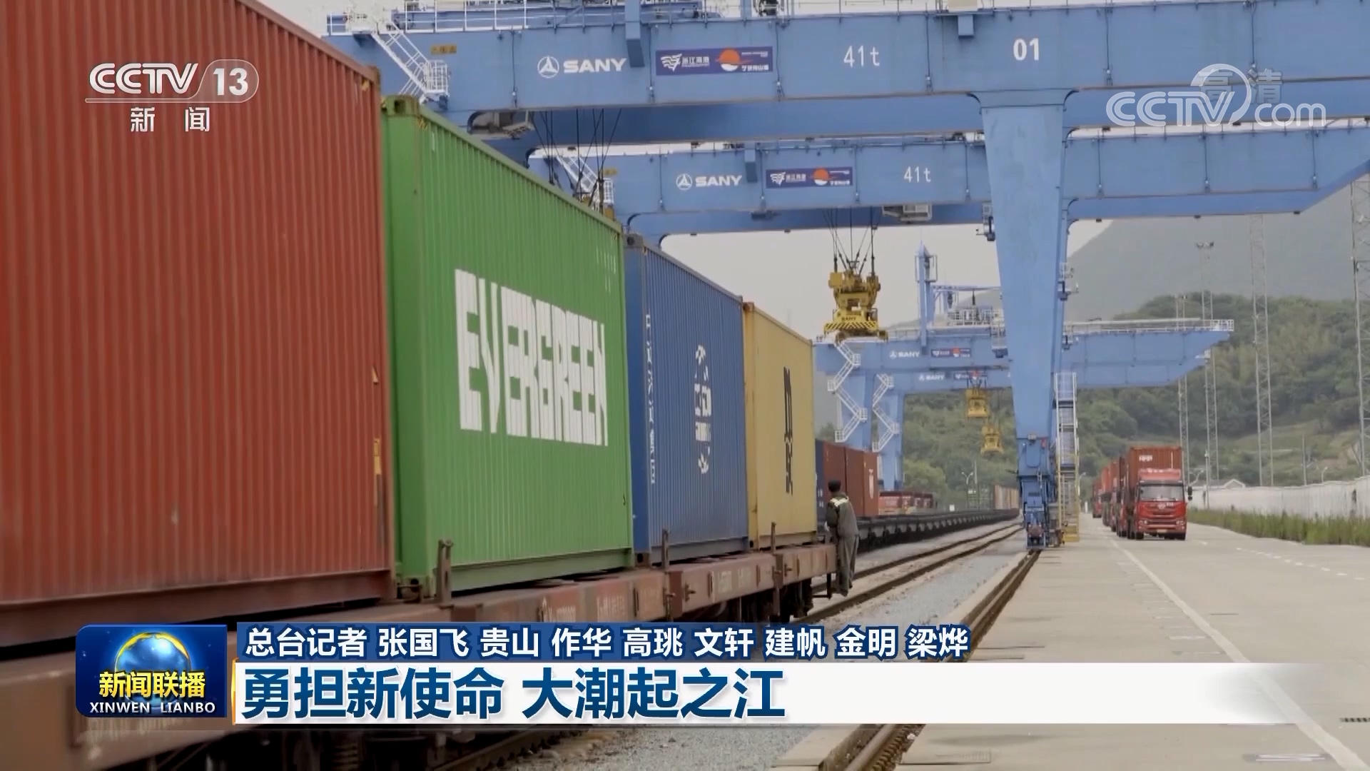 浙江地处长三角南翼,是我国改革开放先行区之一。今天(6月3日)上午,在宁波舟山港铁路穿山港站,一批满载家电和太阳能等设备的集装箱,即将运往马来西亚、新加坡等“一带一路”沿线国家和地区。